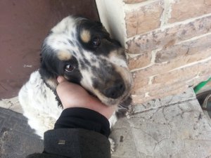 23.04.2013 рано утром на Ильинском шоссе в районе с. Петрово-Дальнее наден спаниель. Светлый, с черными ушами. Молодой мальчик, знает машину.